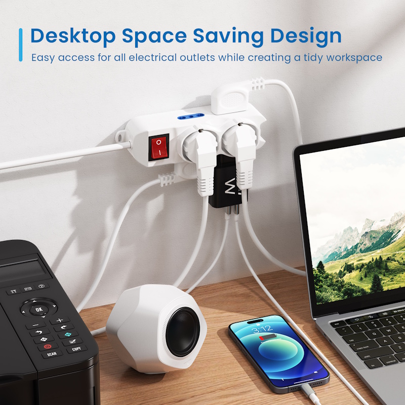 Cube-shaped design Power strip 3-way with 2 Usb and 1 Usb-C
