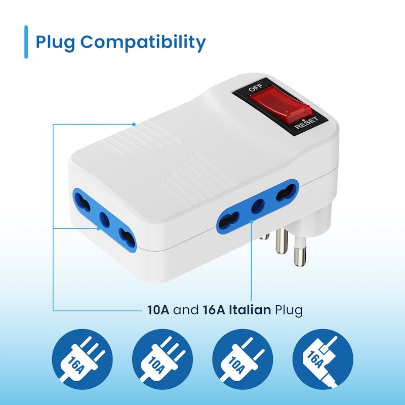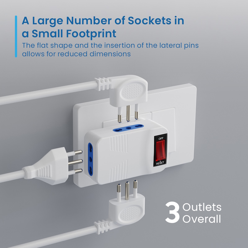 Adaptador eléctrico de 3 posiciones con enchufe italiano 10A