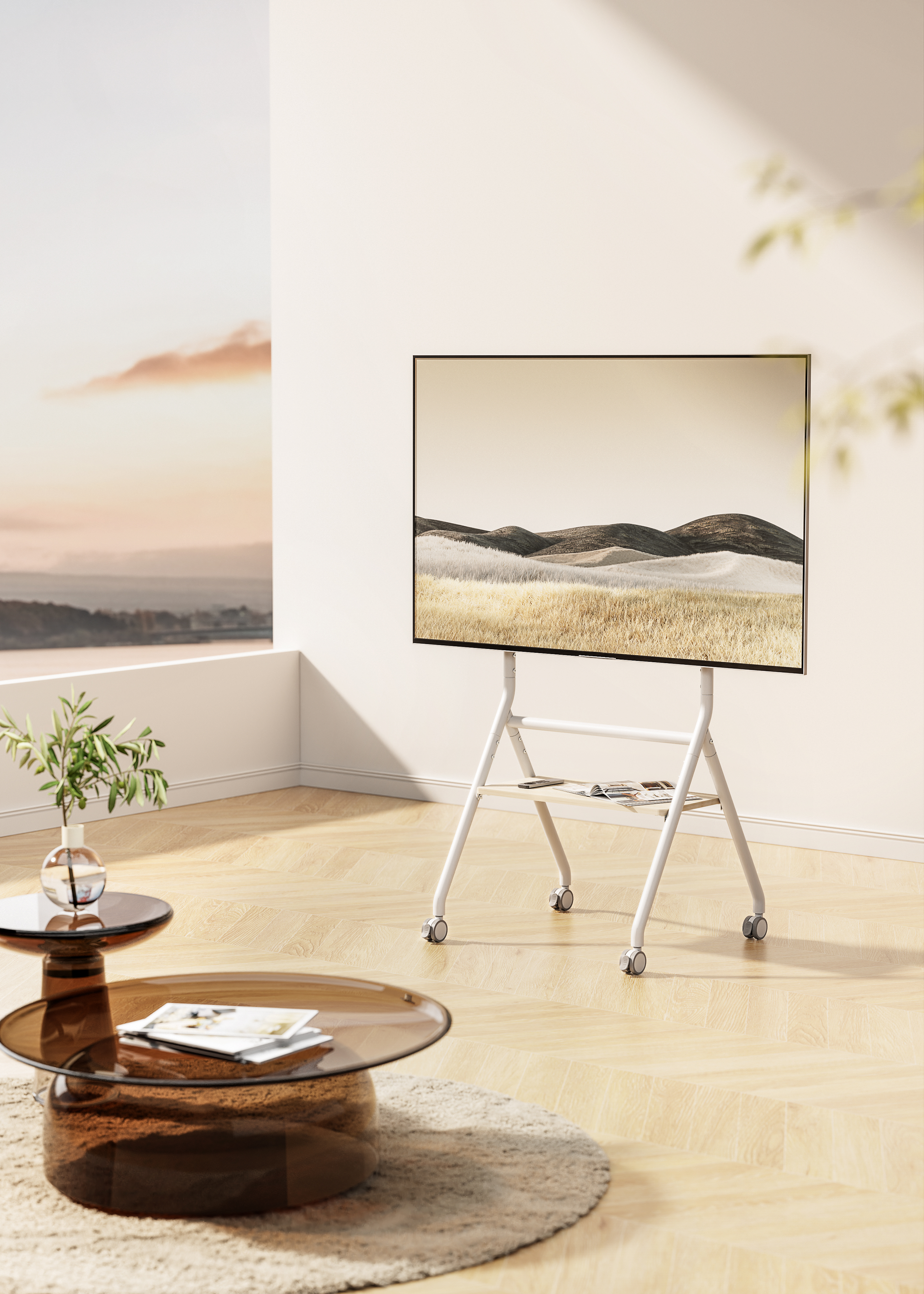 - Soporte para TV con altura ajustable: Garantiza la mejor experiencia de visualización permitiéndote ajustar la altura según tu preferencia, proporcionando comodidad y visibilidad óptimas. - Construcción de acero resistente: Diseñado para soportar con confianza los televisores más pesados, asegurando estabilidad y durabilidad. - Diseño ajustable de doble gancho: Cuenta con un diseño robusto y duradero, fácil de instalar, que proporciona un montaje seguro para tu TV. - Ruedas resistentes con mecanismo de bloqueo: Equipado con ruedas fuertes que permiten un movimiento suave y pueden bloquearse de forma segura para evitar desplazamientos no deseados. - Estante para equipo: Ofrece espacio adicional para accesorios como controles remotos, reproductores multimedia u otros equipos, manteniendo todo lo que necesitas al alcance de la mano.