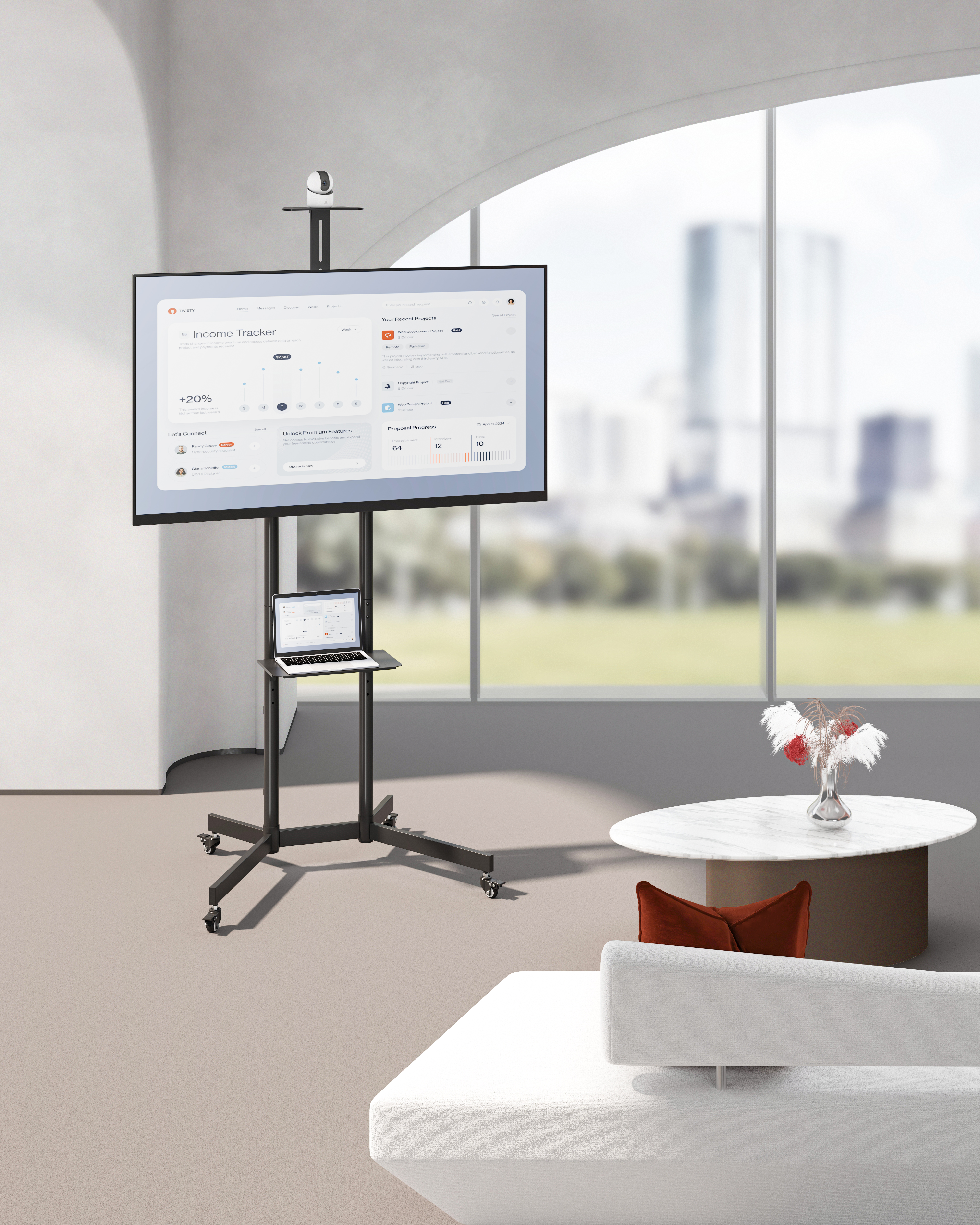 - Height Adjustable TV Mount: Ensures optimal viewing experience by allowing you to adjust the height to your preference. - Height Adjustable Equipment Shelf: Offers additional storage space for accessories, keeping everything you need within reach. - Heavy-Duty Casters with Locking Mechanism: Provides mobility and stability, allowing you to move or secure the unit as needed. - Height Adjustable Camera Shelf: Enhances video clarity during meetings and presentations by positioning the camera at the ideal height. - Cable Clip: Organizes cables to reduce clutter, creating a cleaner and more organized workspace.